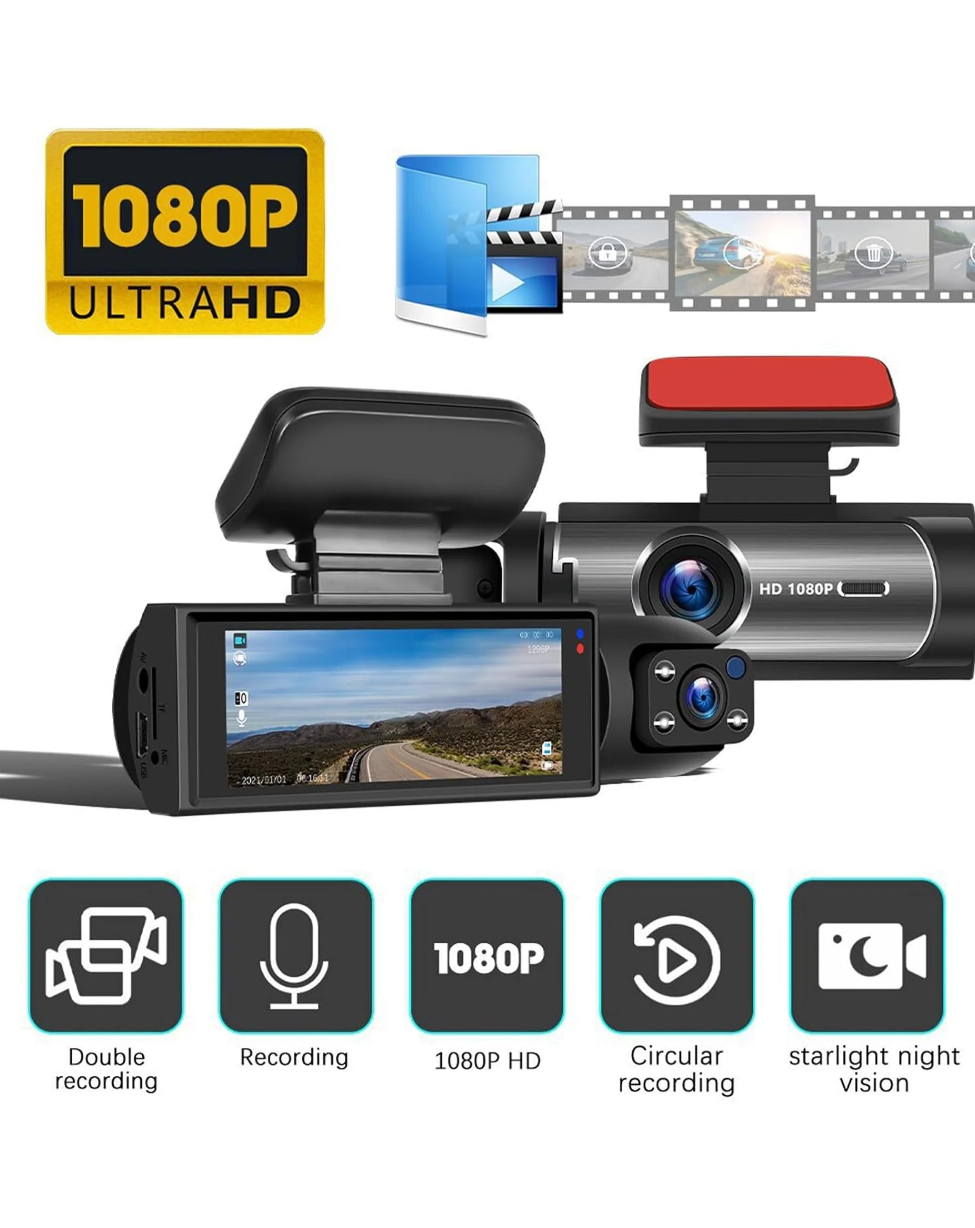 Slim Design Full HD Dash Cam with (1540 mAh) Battery